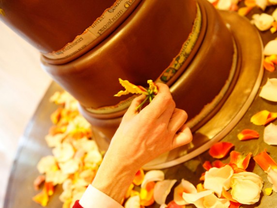 Délice festif dans un grand espace riche en lambris avec comme pièce maîtresse, le « gâteau de mariage », décoré d’une mousseline de lin et de rubans. Conclure en style à la poursuite des Tudors !